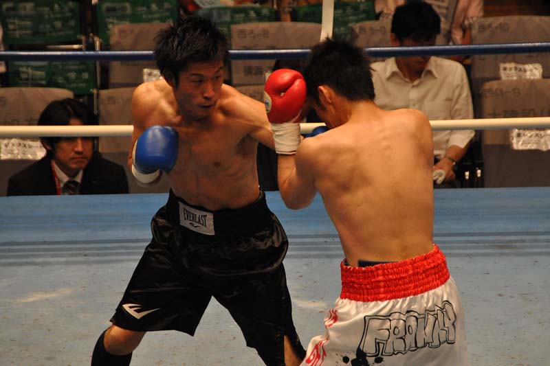 距離を潰して前に出るチカシ、相手の三浦選手は上から下のボディへと繋げて行きました。